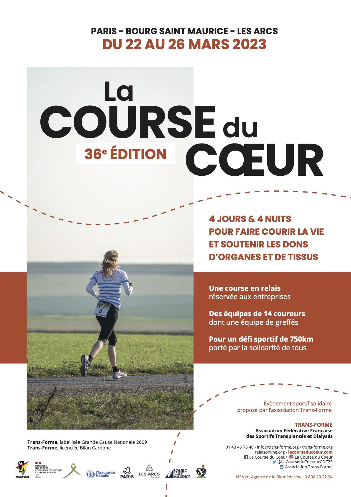 Dans le cadre de ses actions de sensibilisation du grand public aux enjeux du don d’organes, l’association Trans-Forme organise cette année la 36ème édition de la Course du Cœur, du mercredi 22 au dimanche 26 mars 2023