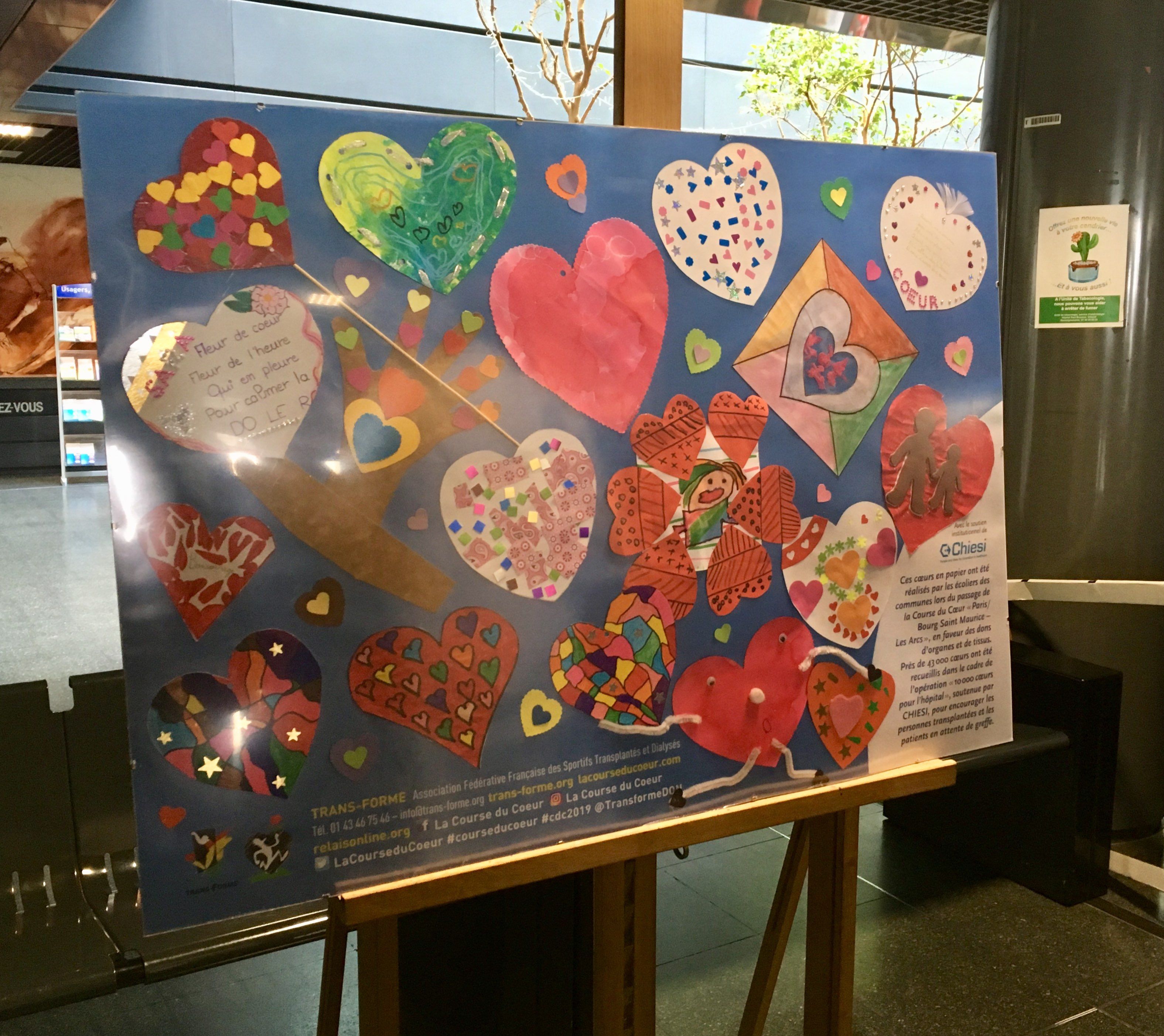 Dans le cadre du partenariat avec le Laboratoire Chiesi, Trans-Forme a organisé deux remises « in situ » de tableaux « Cœurs d’écoliers » au sein du CHU Paul Brousse de Villejuif (94) et du CHU de Nantes (44).
